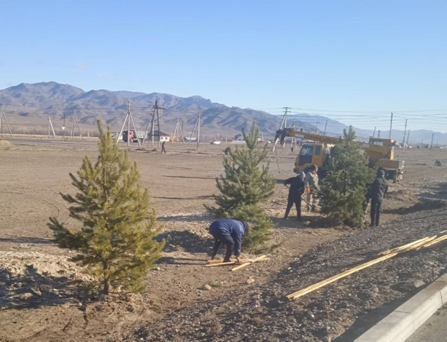 Работники дорожно-транспортного комплекса Тувы посадили саженцы