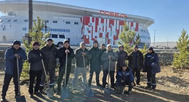 Работники дорожно-транспортного комплекса Тувы (#Туваавиа, #Тываавтодор, #ЦОДД, #Туваавтотранс, #Миндортранс) в пгт Каа-Хем активно приняли участие в озеленении прилегающей территории спортивно-культурного центра «Победа» (название выбрано в честь 80-летия Великой Победы и Года Защитника Отечества). Мужчины посадили молодые сосенки.