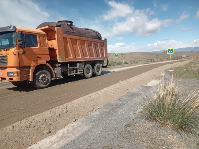 Применена современная технология укрепления грунтовых дорог цементо-грунтом на участке Хандагайты – Мугур-Аксы (14 км);